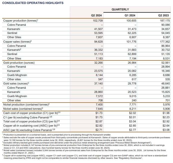 当地时间7月23日,第一量子(First Quantum)公布2024年第二季度报告。